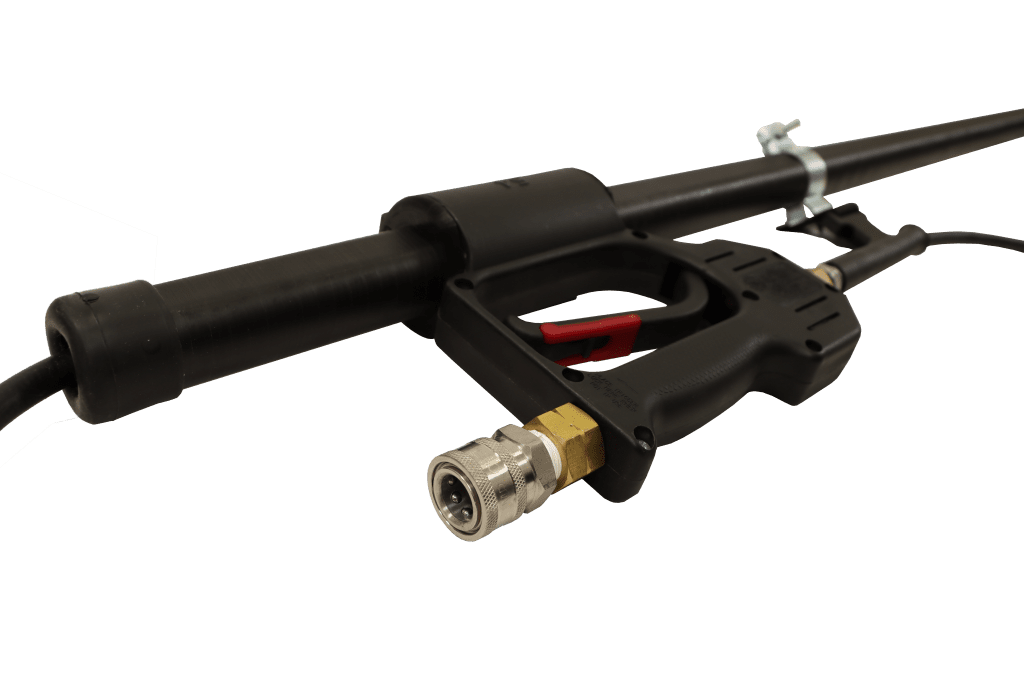 - Sturdy Trigger attached firmly to the pole section (can be adjusted) with hose swivel and quick release fitting