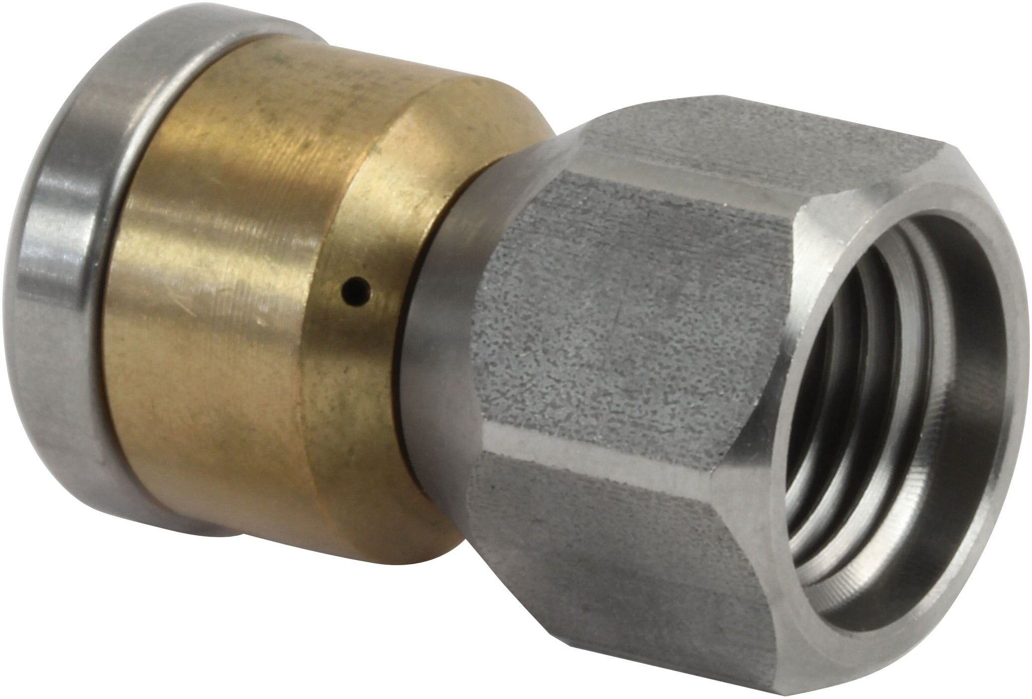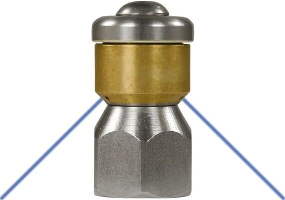 This Suttner ST49.1 Sewer nozzle does not have a forward facing jet but has orifices that are angled backwards and to the side. This enables the nozzle to rotate and slide easily into drain pipes and sewer lines. The rotating action of the nozzle ensures effective cleaning throughout the entire length of the pipe